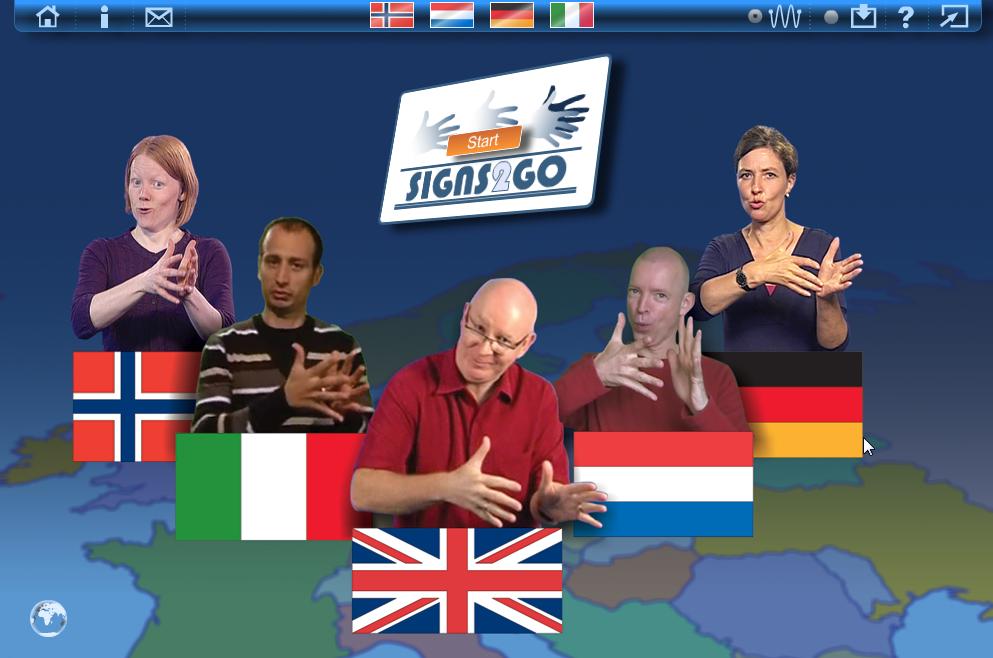 In het Signs2Go project is een on-line cursus British Sign Language ontwikkeld, speciaal voor dove mensen in Nederland, Duitsland, Italië en Noorwegen. De instructietaal is de nationale gebarentaal van de cursisten. Ook cursisten die het Engels niet kunnen lezen en schrijven, en zelfs cursisten die helemaal niet kunnen lezen en schrijven, kunnen hier BSL als vreemde taal leren. In dit project wilden we twee dingen bereiken: